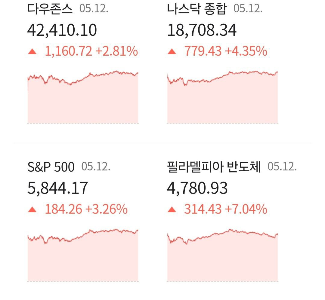 - 05/13 미 증시, 미-중 무역 협상 결과에 환호하며 큰 폭 상승