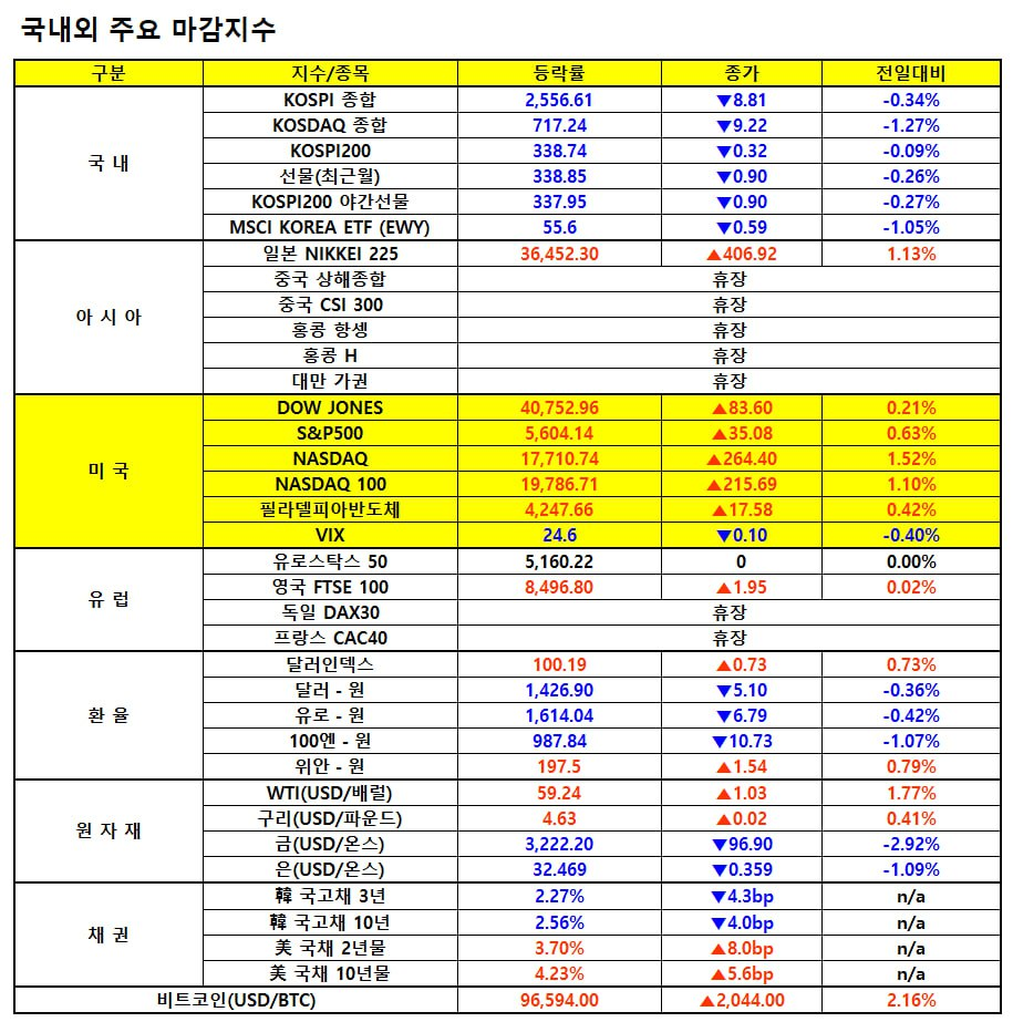 - 여기에 자본 지출 규모 증가 소식에 엔비디아(+2.47%)가 상승하는 등 반도체 업종도 강세.