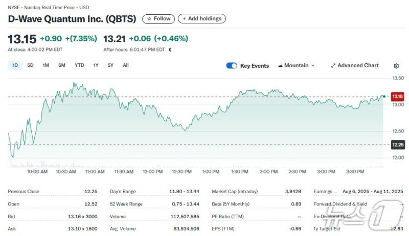- 최근 견조한 실적을 발표했던 디 웨이브 퀀텀(+7.35%)도 큰 폭 상승.