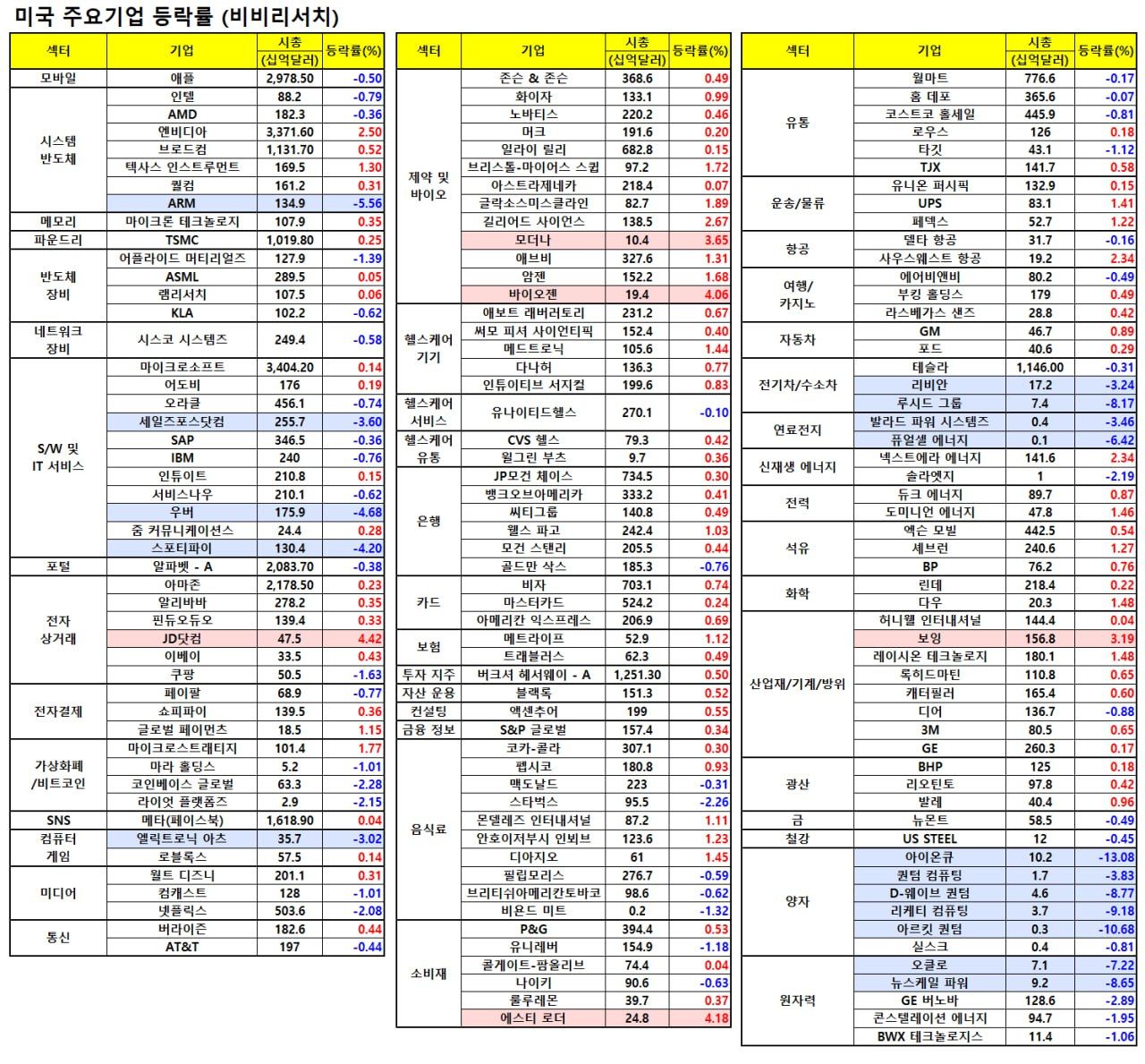 - 아리스타 네트웍(-6.92%)은 엔비디아가 네트워킹 장비에 대한 신규 고객으로 메타와 구글을 확보했다고 공개하자 크게 하락.