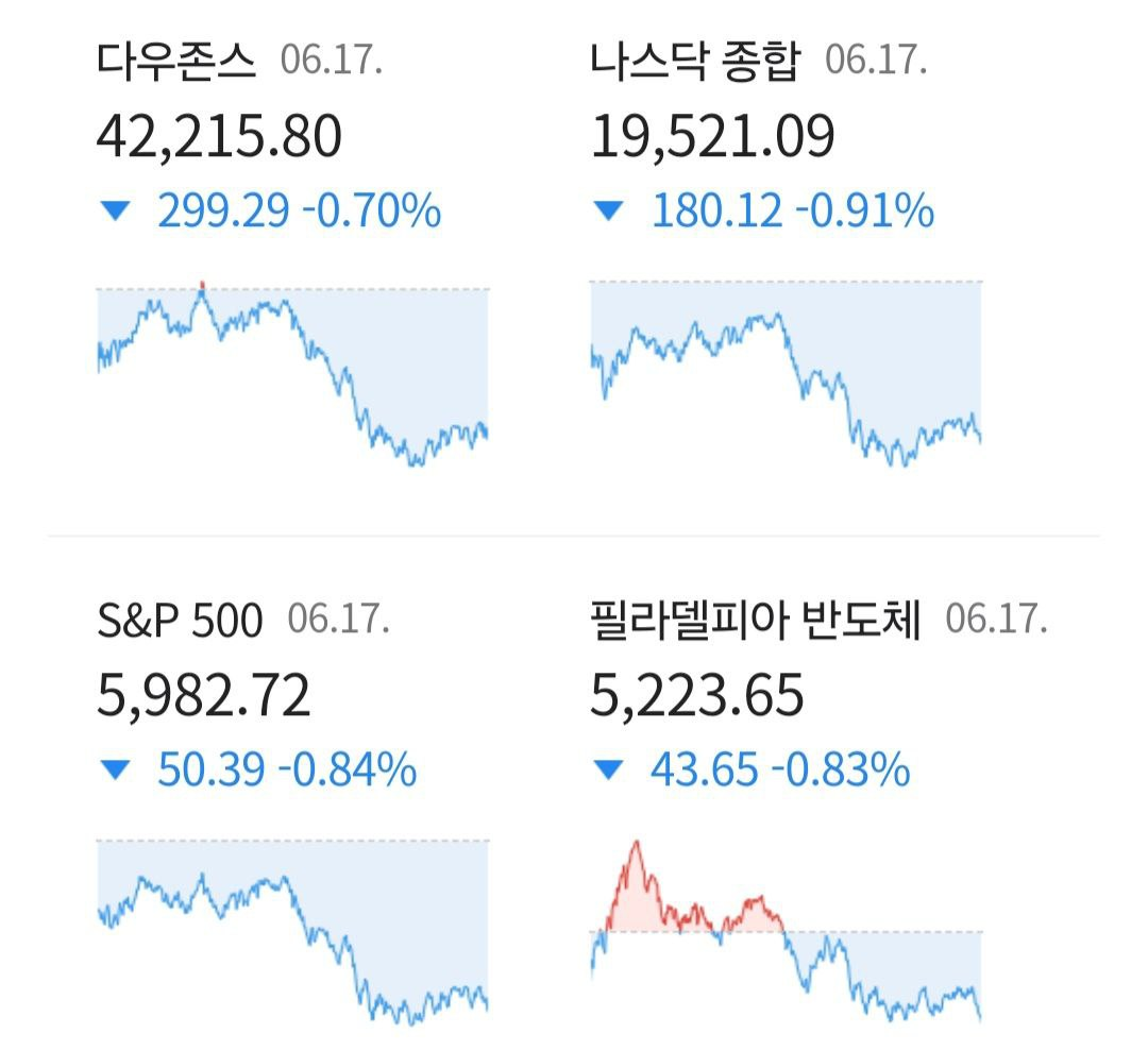 - 06/18 미 증시, 이스라엘-이란 사태에 미군 개입 우려로 하락폭 확대