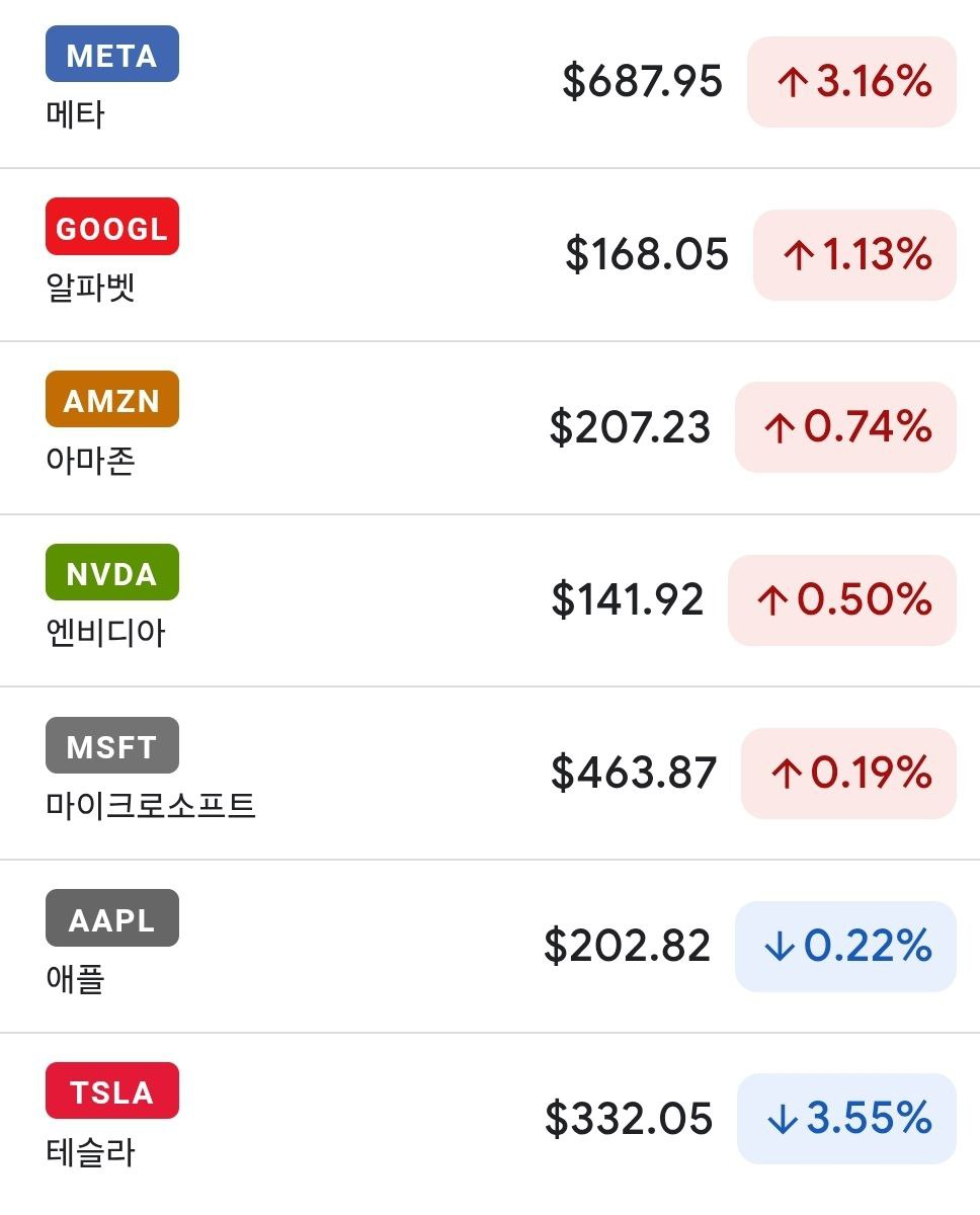 - *특징 종목: 메타 플랫폼 상승 지속 Vs. 테슬라 하락 지속