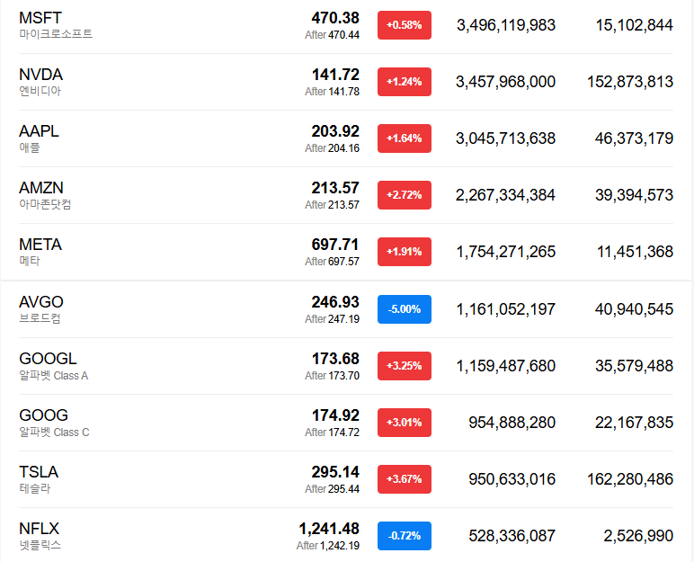 - 아마존(+2.72%)은 대만 데이터 센터에 50억 달러 투자 등 AI 산업에 공격적으로 투자하고 있다는 점, 고용보고서의 견조함 등의 영향을 받아 상승.
