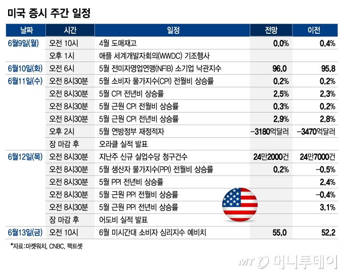 - 5월 CPI 발표, 관세 영향…애플 WWDC 개최