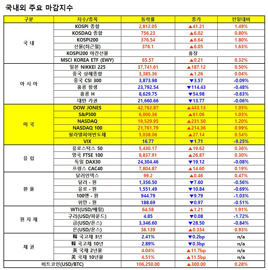 - 다우존스지수는 1.2%, S&P500지수는 1.5%, 나스닥지수는 2.2% 올랐다. 미국의 지난 5월 비농업 부문 취업자수는 13만9000명 늘어 이코노미스트들의 전망치 12만5000명을 웃돌며 양호한 증가세를 보였다.