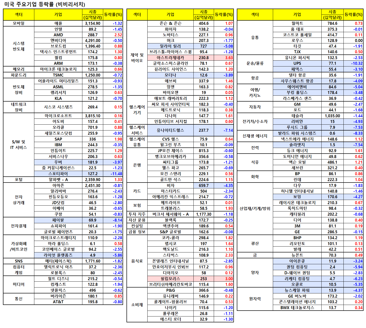 - 섹터별 흐름은 주로 실적 발표에 의해 움직였습니다.