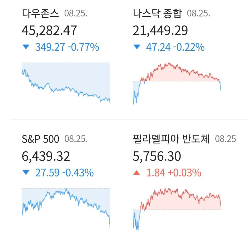- 08/26 미 증시, 프랑스 정치 불안 및 차익 실현 출회 매물 여파로 하락