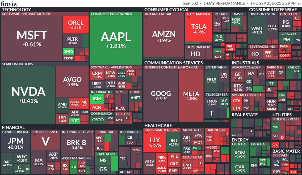 9월 26일 시황. 지표 호조. 오라클, 테슬라 약세에 하락
