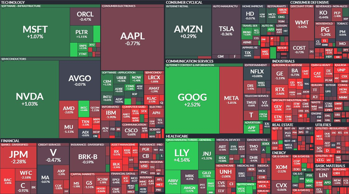 *특징 종목: 일라이릴리, 알파벳 상승 Vs. 금융, 산업재 등 부진