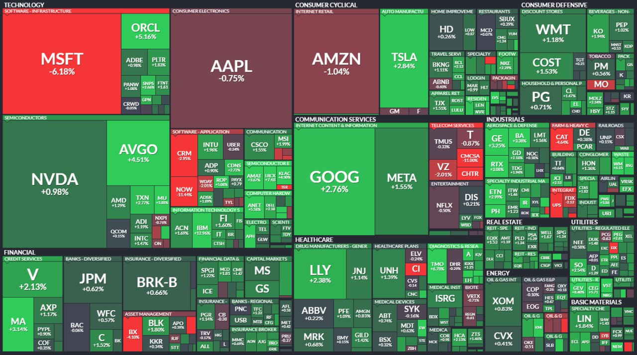 - 마이크로소프트는 실적이 기대에 미치지 못하며 약세를 보인 반면 Meta와 테슬라는 상승함.