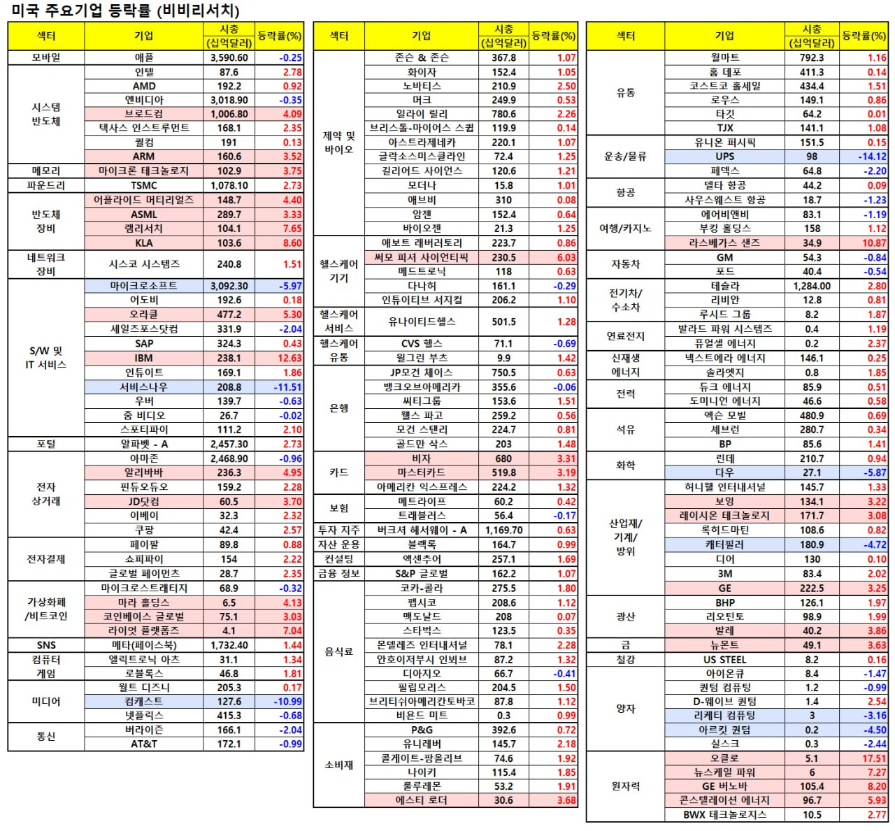 - IBM(+12.96%)은 예상을 상회한 실적 발표에 급등.