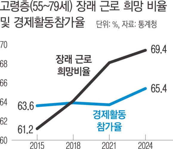 10. ‘73.3세까지 일하고 싶다’ → 55~79세 중 일하기를 희망하는 사람은 69%, 희망하는 은퇴시기는 73.3세. 근로 이유로는 생활비 보탬(55.0%)이 가장 많았고, 일하는 즐거움(35.8%)이 그 뒤.(경향)▼