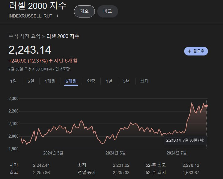 - 사이버 보안회사인 크라우드스트라이크(-9.72%)는 최근 IT대란으로 델타항공(+0.46%)이 소송을 준비하고 있다는 소식에 급락.