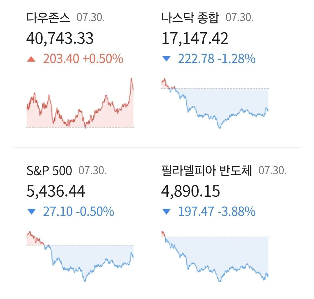 - 07/31 나스닥, 반도체 업종 중심으로 매물 출회되며 하락 후 낙폭 축소