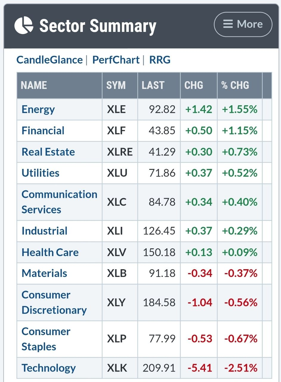 - 소비재 관련 종목인 P&G(-4.84%)는 실망스러운 수요가 실적에 부담을 줬다고 발표하자 하락.