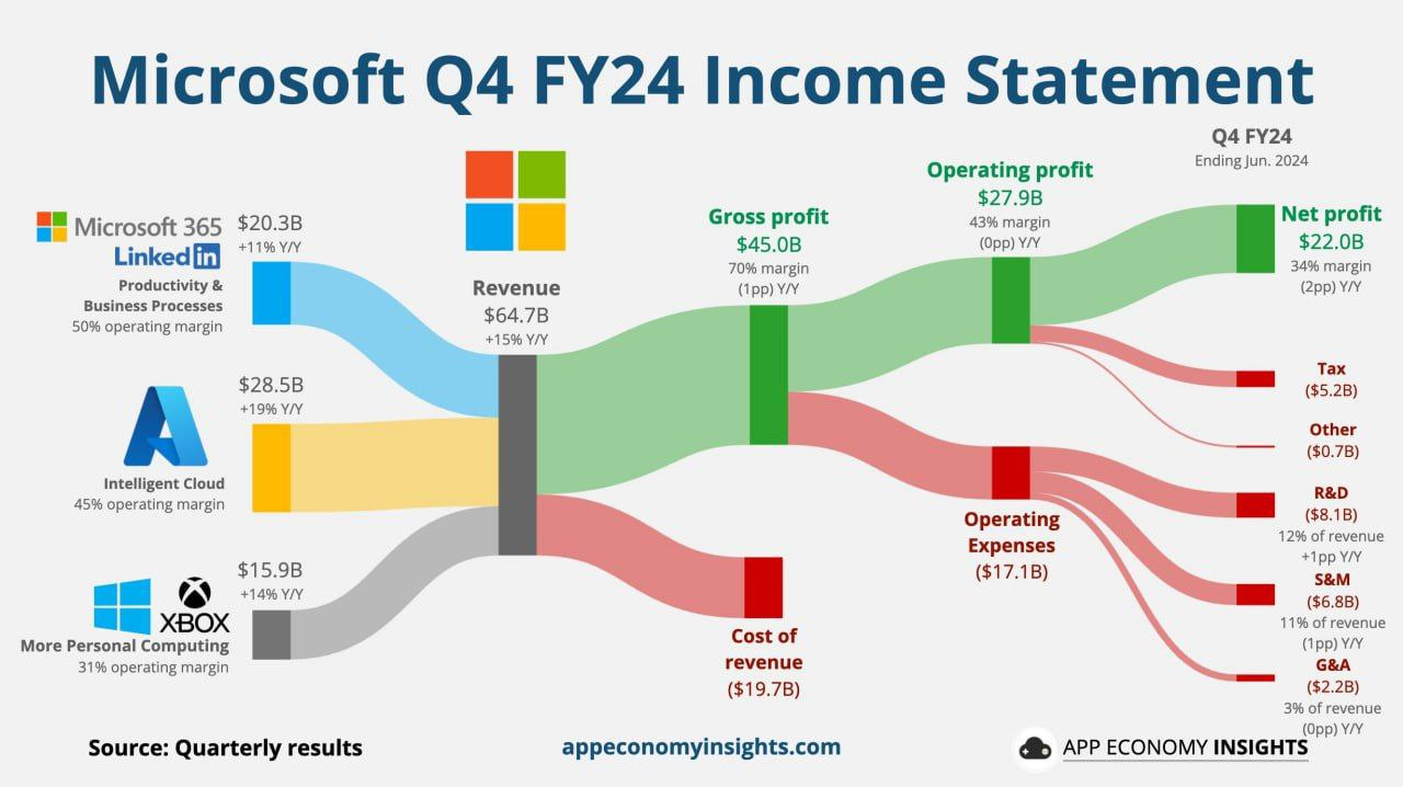 - 4분기 총 매출은 647억 달러로 전년 대비 15% 증가했으며, 주당 조정 이익은 2.95달러로 예상치를 소폭 상회했다. - Azure