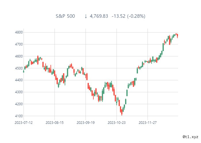 - 전장보다 소폭 하락하며 역대 최고치(4,796.56)를 경신하진 못했지만 9주 연속 상승세를 타고 2023년 한해 기준으로는 24% 상승으로 성공적인 마무리를 맺었다.