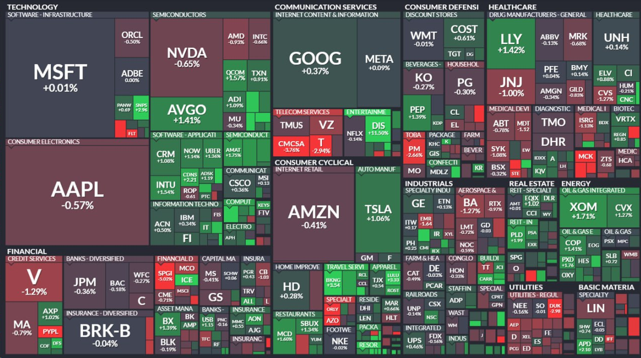 - 디즈니(+11.50%)는 매출 부진에도 불구하고 비용 절감 효과로 강력한 이익을 발표한 데 힘입어 급등. 2024년에도 비용 절감 목표를 확대한 점도 긍정적인 영향.