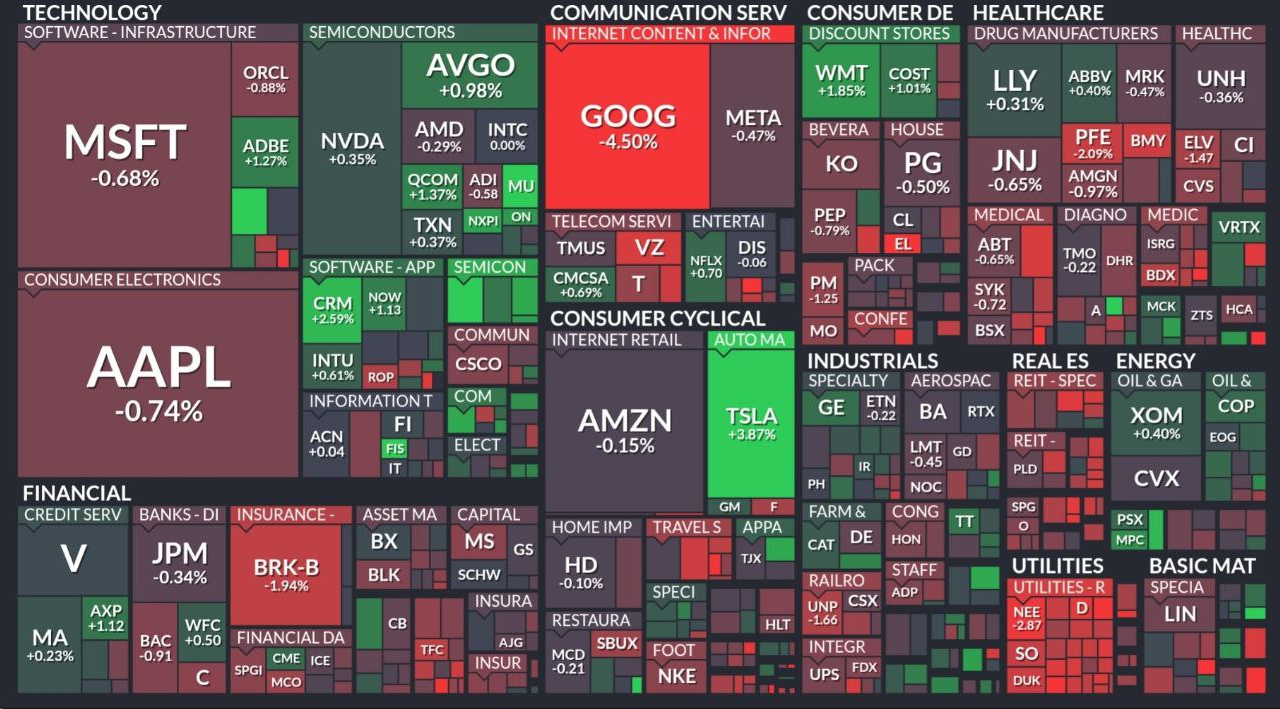 - 알파벳(-4.4%)은 생성형 AI인 제미니(Gemini)의 이미지 생성 기능에서 일부 부정확한 역사적 묘사로 서비스를 중단하자 하락.