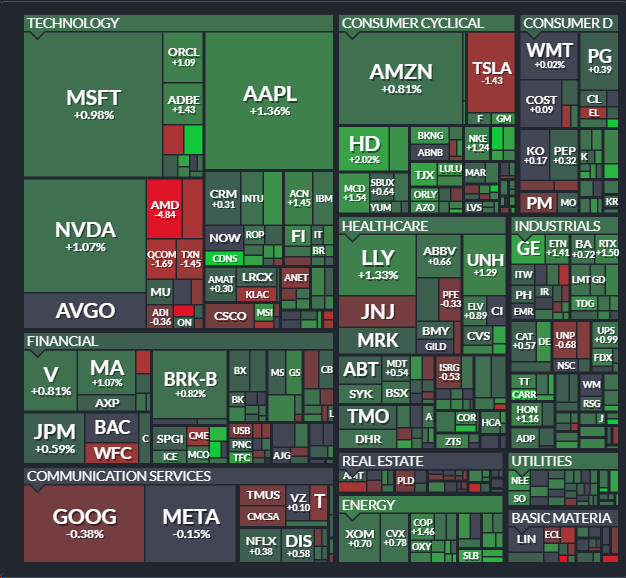 - 다우지수 0.8% 상승, S&P 500 0.45% 상승, 나스닥 0.4% 상승 마감
