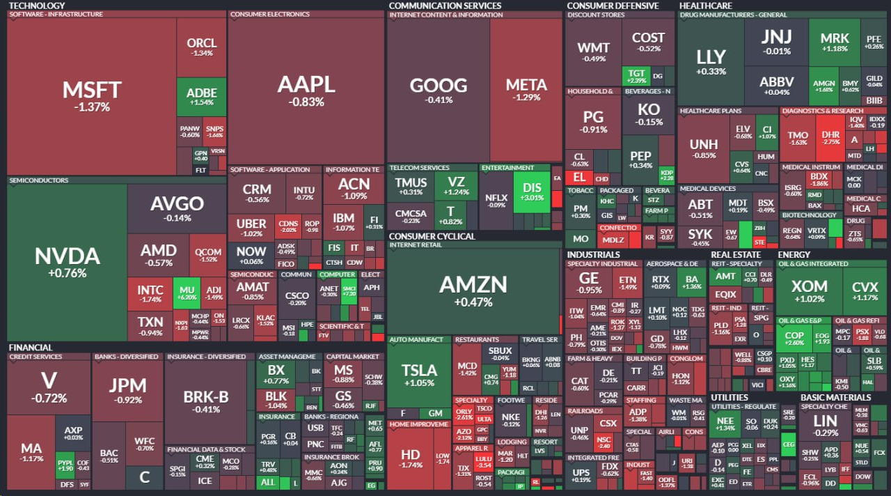 - 조정세에도 불구하고 엔비디아와 마이크론은 추가 상승세를 보였으며 특히 마이크론은 6% 이상 상승하며 최고치를 경신함.