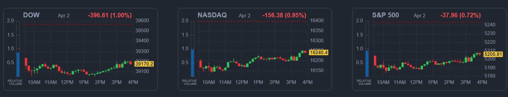 - DOW ▼ 39,107.24 (-1.0%)
