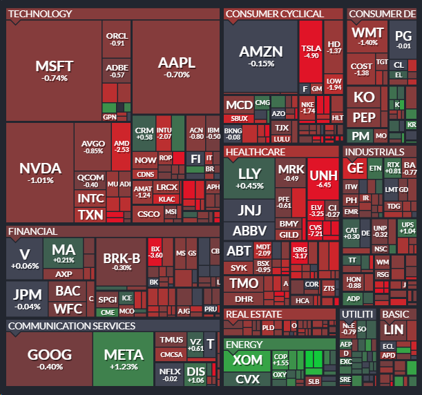 - 특히, 테슬라는 1분기 차량 인도량이 2020년 이후 처음으로 감소했다는 소식에 약세를 기록 하였고 유나이티드헬스, 휴마나 등 대형 건강보험회사는 메디케어 요율 인상 영향으로 급락.