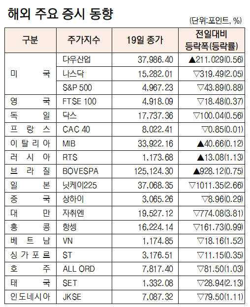 - 또한 애플과 테슬라(-1.9%)는 연중 저점을 새롭게 경신.