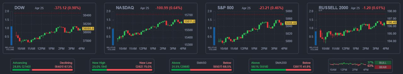 - DOW ▼ 38,085.80 (-1.0%)
