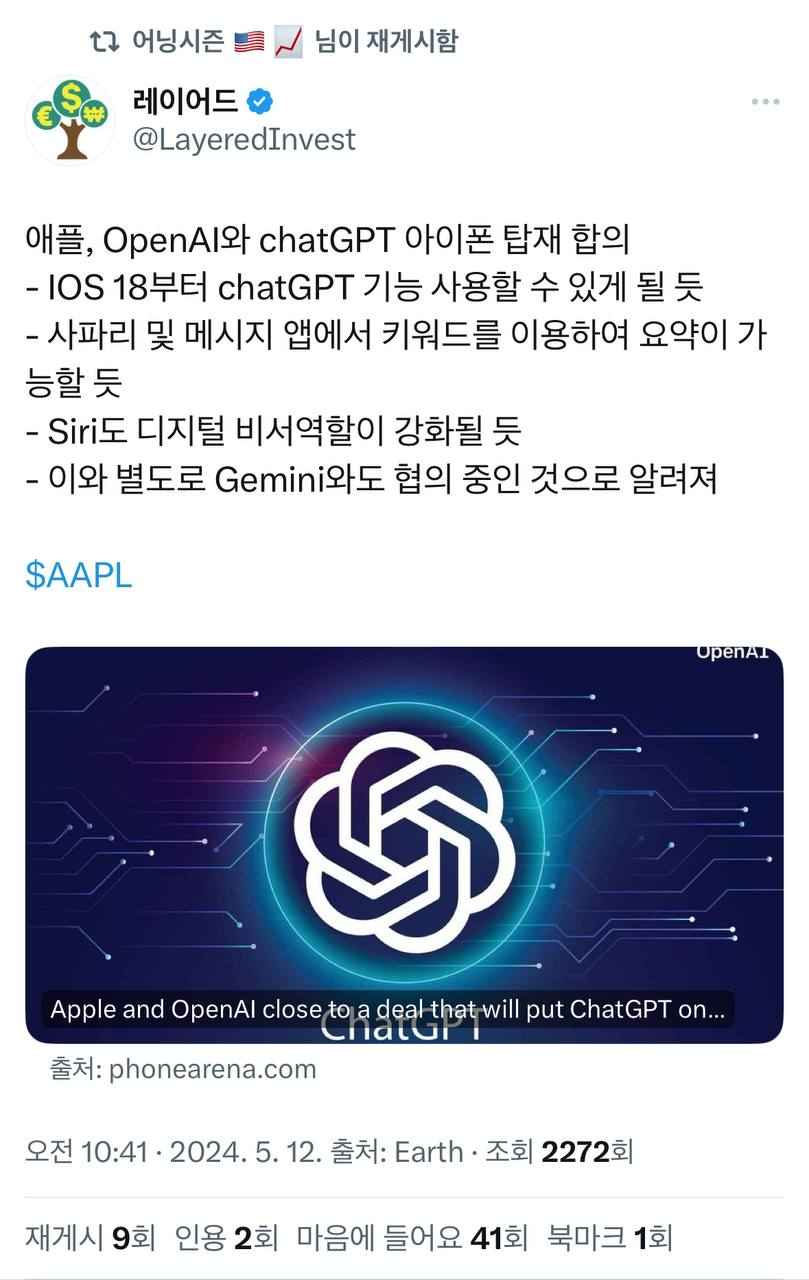 "애플, 내달 AI 탑재한 시리 공개"…챗GPT 유력
