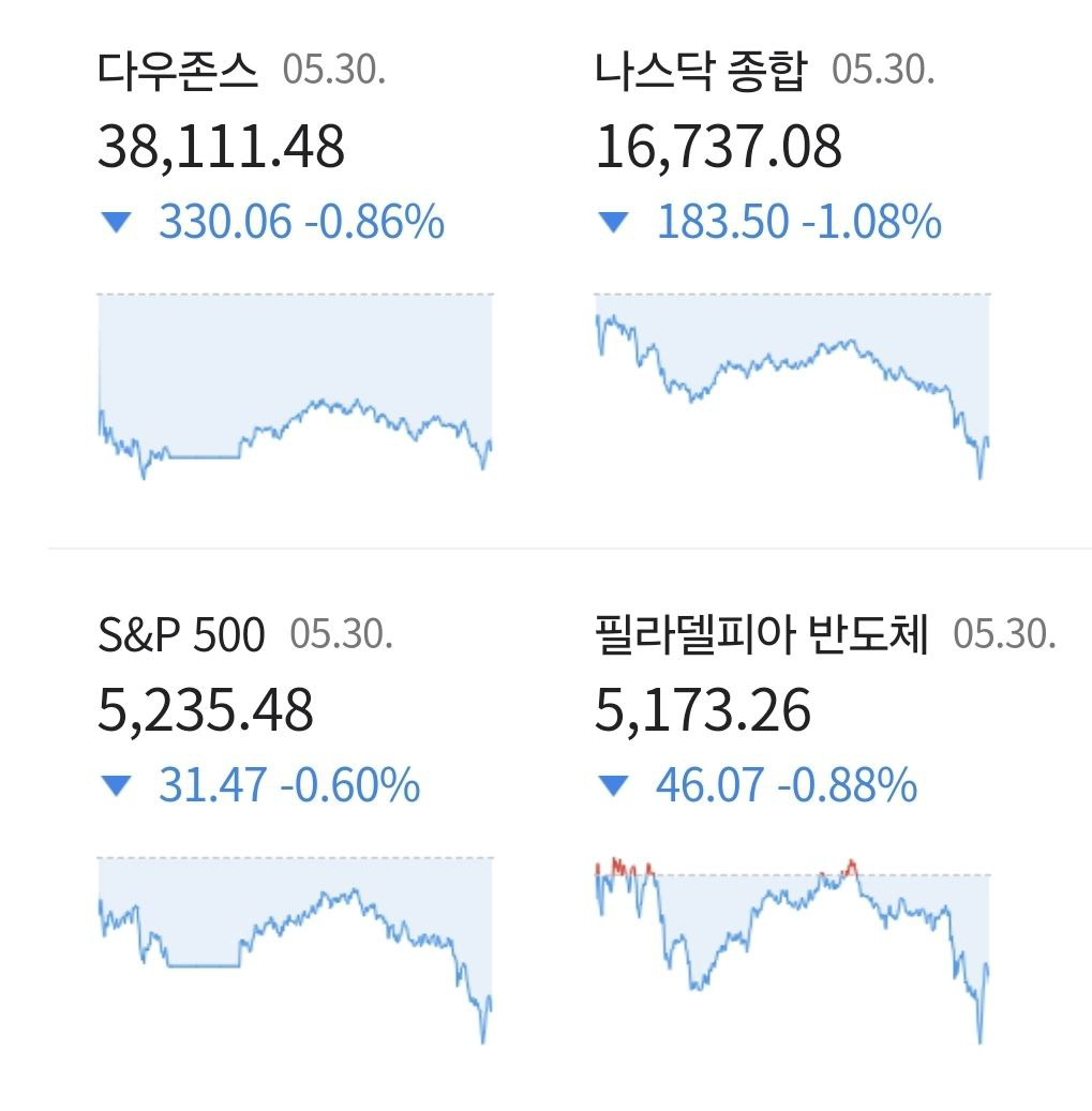 - 5/31 미 증시, 1분기 GDP 성장률 둔화에 약세 마감