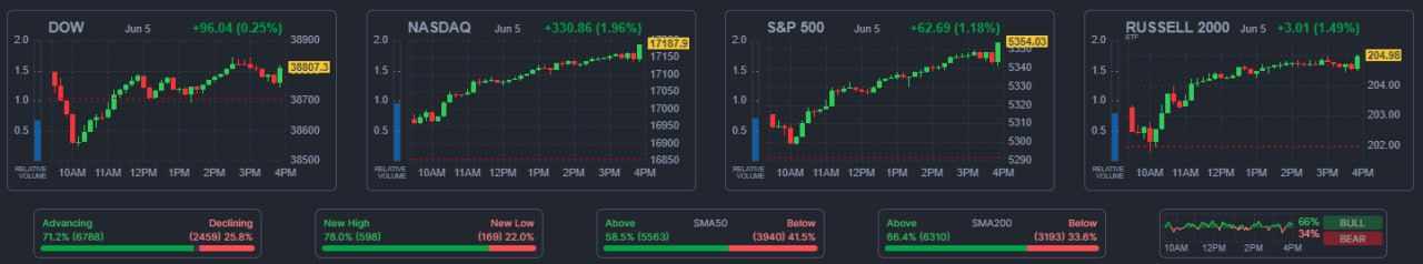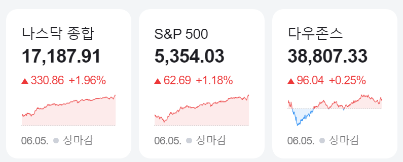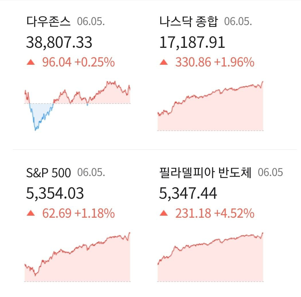 - 06/06 미 증시, 경기 둔화 우려 완화 속 반도체 쏠림 강화되며 상승