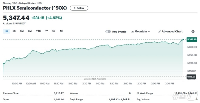 - 반도체 지수는 4.5% 이상 오르며 최고치 돌파