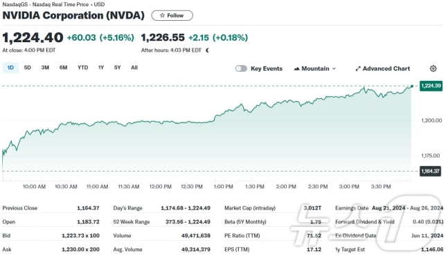 - 엔비디아 시총 3조달러 돌파에 나스닥 최고가…S&P500도 1.18%↑