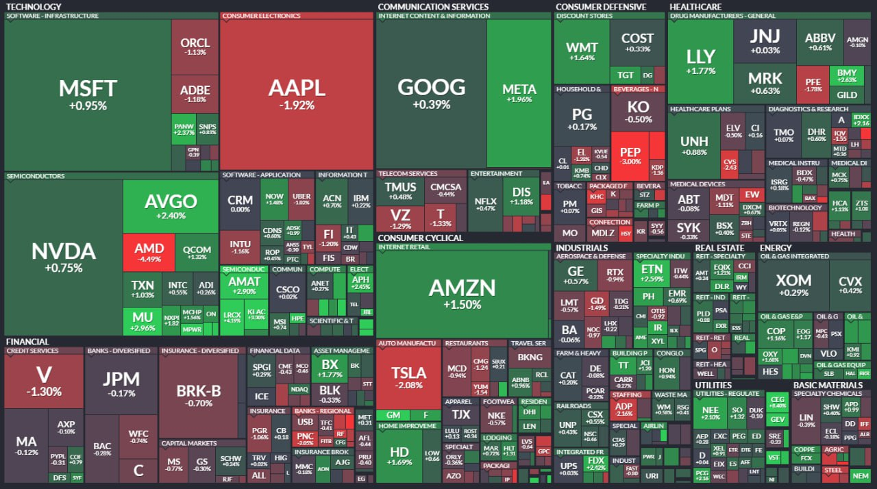 - 애플(-1.91%)은 AI와 관련된 내용을 발표했지만, 대체로 미리 알려진 내용과 크게 다르지 않았다는 점에서 하락.