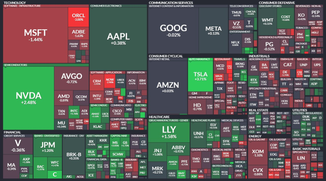 - 테슬라(+3.71%)는 최근 2분기 인도량이 예상을 상회한 이후 상승세가 이어지고 있음.