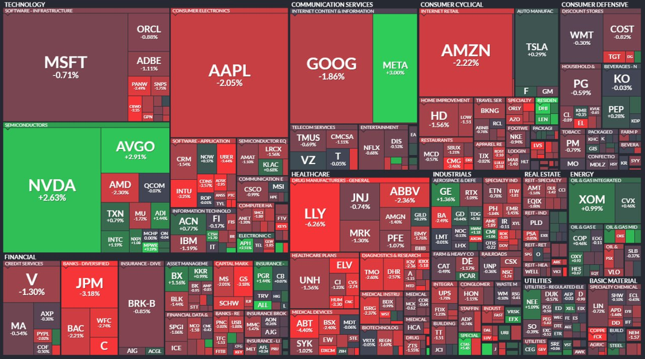 - 애플과 아마존 -2%대, 일라이릴리 -6%, JP모건 -3%