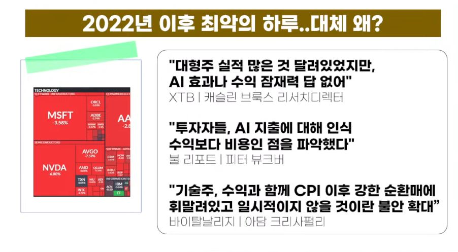 - 빅테크와 AI주도주의 상승이 장기적으로 지속될 수 있는지에 대한 의문이 제기되는 상황.