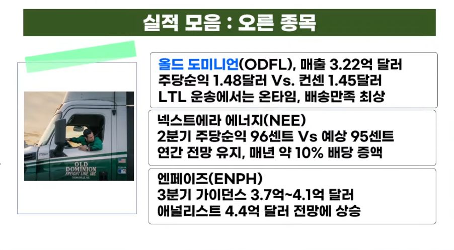 - 태양광 관련 업체인 인페이즈 에너지(+12.80%)는 양호한 실적과 강한 전망을 발표하자 큰 폭으로 상승.