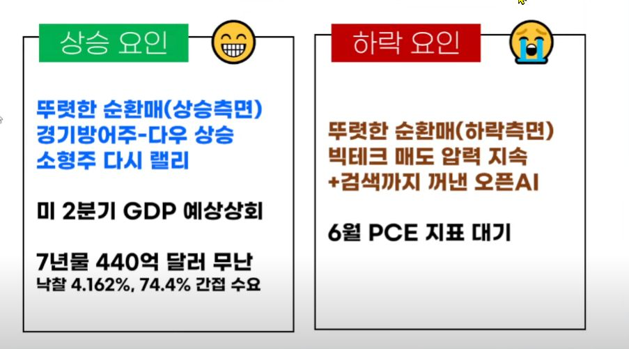 - 중소형 주식의 강세와 강력한 GDP 데이터가 주식시장에 활력을 제공하며 시장이 지지되는 모습.