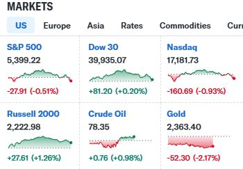 - S&P500 ▼ 5,399.22 (-0.5%)