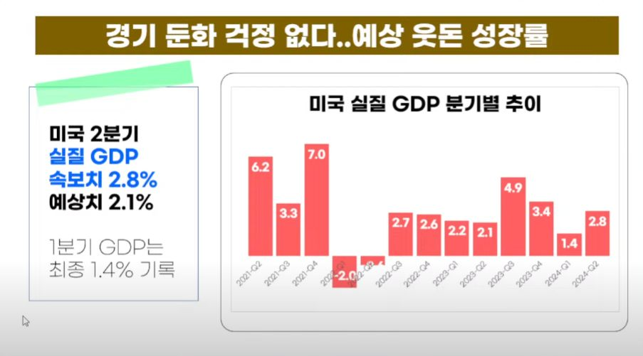 - 美, 2분기 2.8% 깜짝 성장…'골디락스' 기대감 커졌다 - 시장 예상치보다 0.7%P 높아인플레 둔화 속 연착륙 청신호
