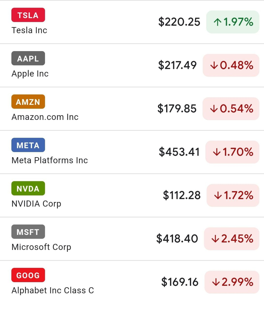 - -매7 중 테슬라 $TSLA 제외 전 종목 하락. 장중 반등 시도했으나 장시작 후 한시간, 장 마감 전 한시간에 매도세가 몰리며 반등 실패.