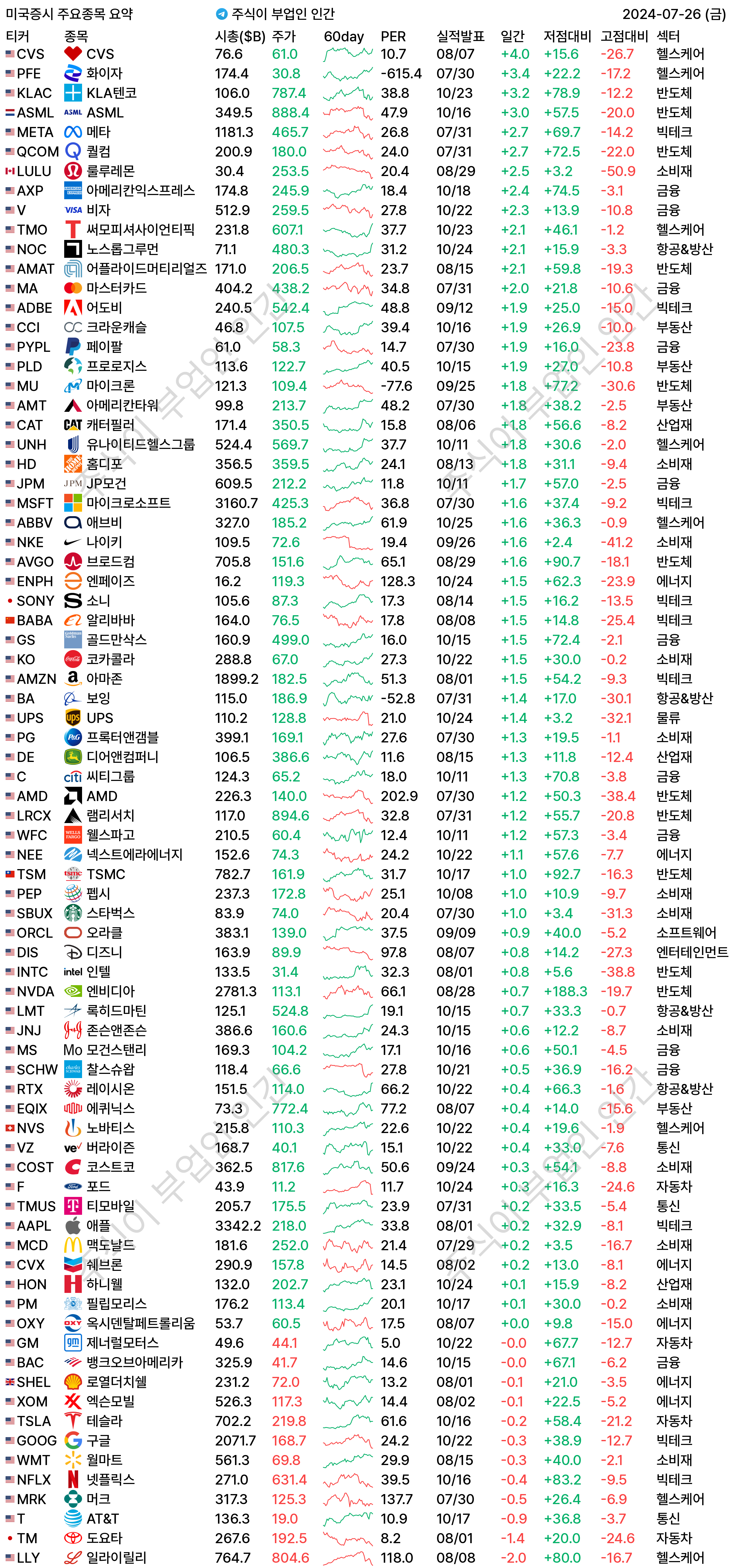 - 7월 30일: 머크,화이자,소파이 실적(장전)
