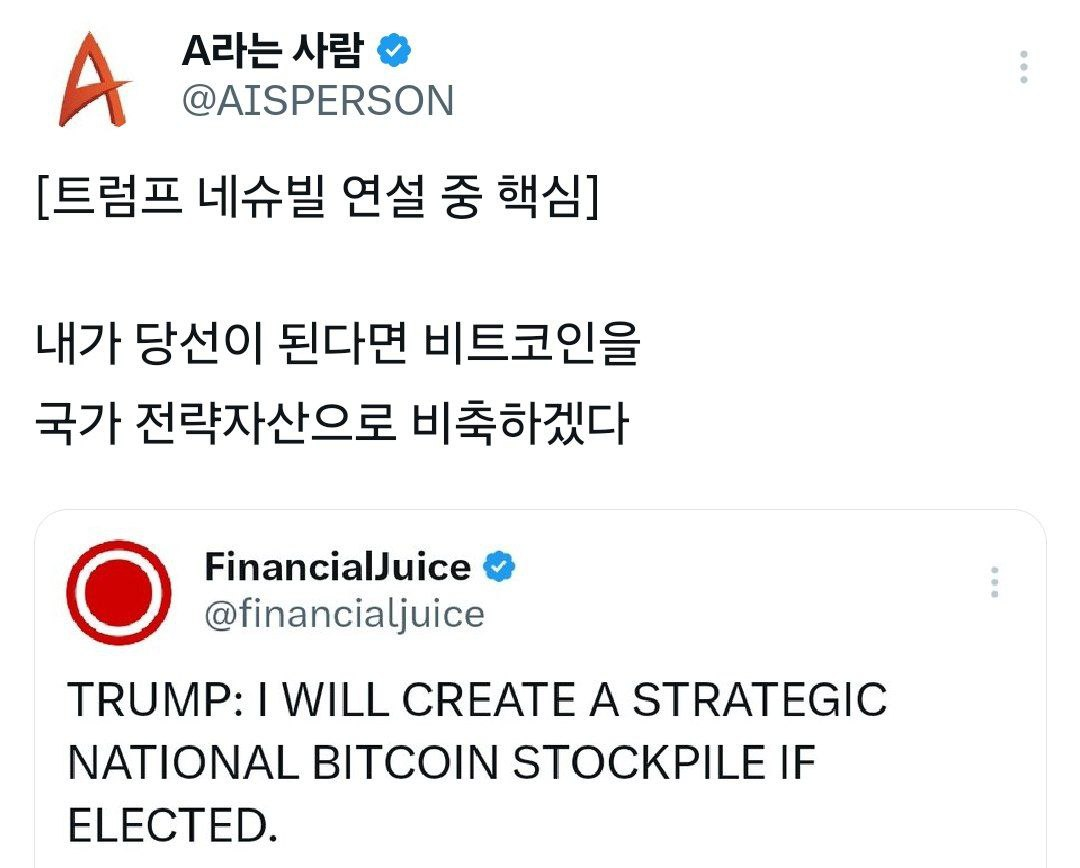 - 비트코인 2024 컨퍼런스 트럼프 발언 -美 정부 차원서 BTC 매도 않을 것-국가 전략 자산으로 BTC 비축할 것