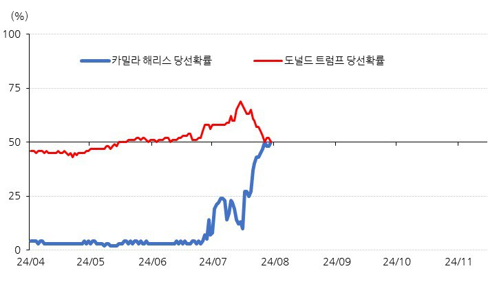 - 해리스 당선확률이 50%까지 오르며 트럼프 트레이드가 감겼습니다.