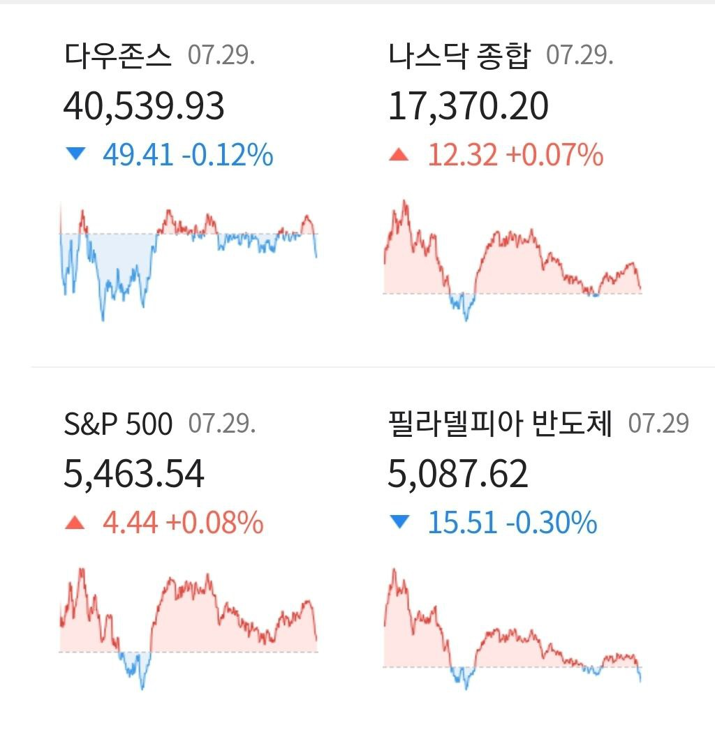 - 07/30 미 증시, FOMC, 실적, 경제지표 발표 앞두고 매물 소화하며 보합권 혼조 마감