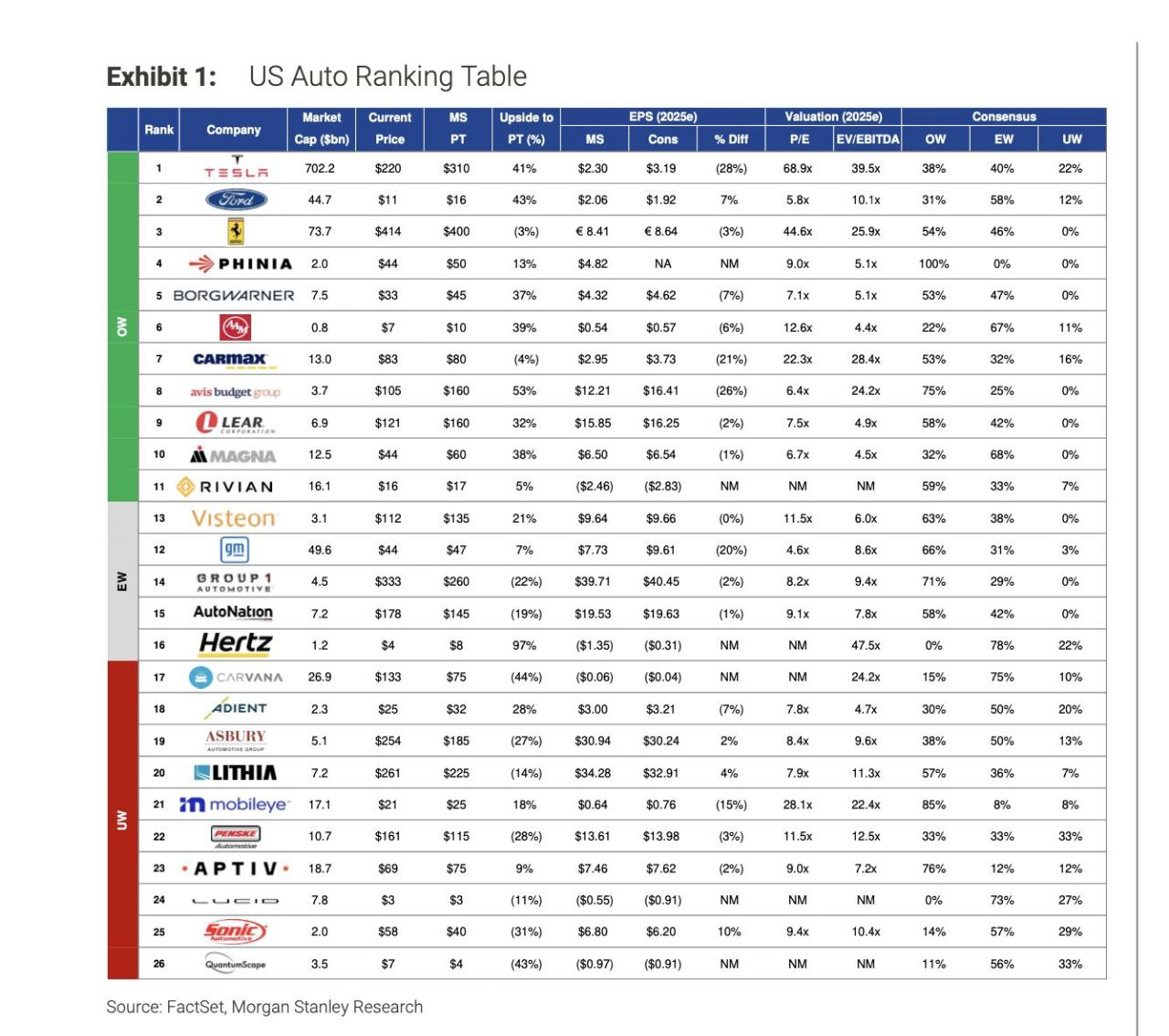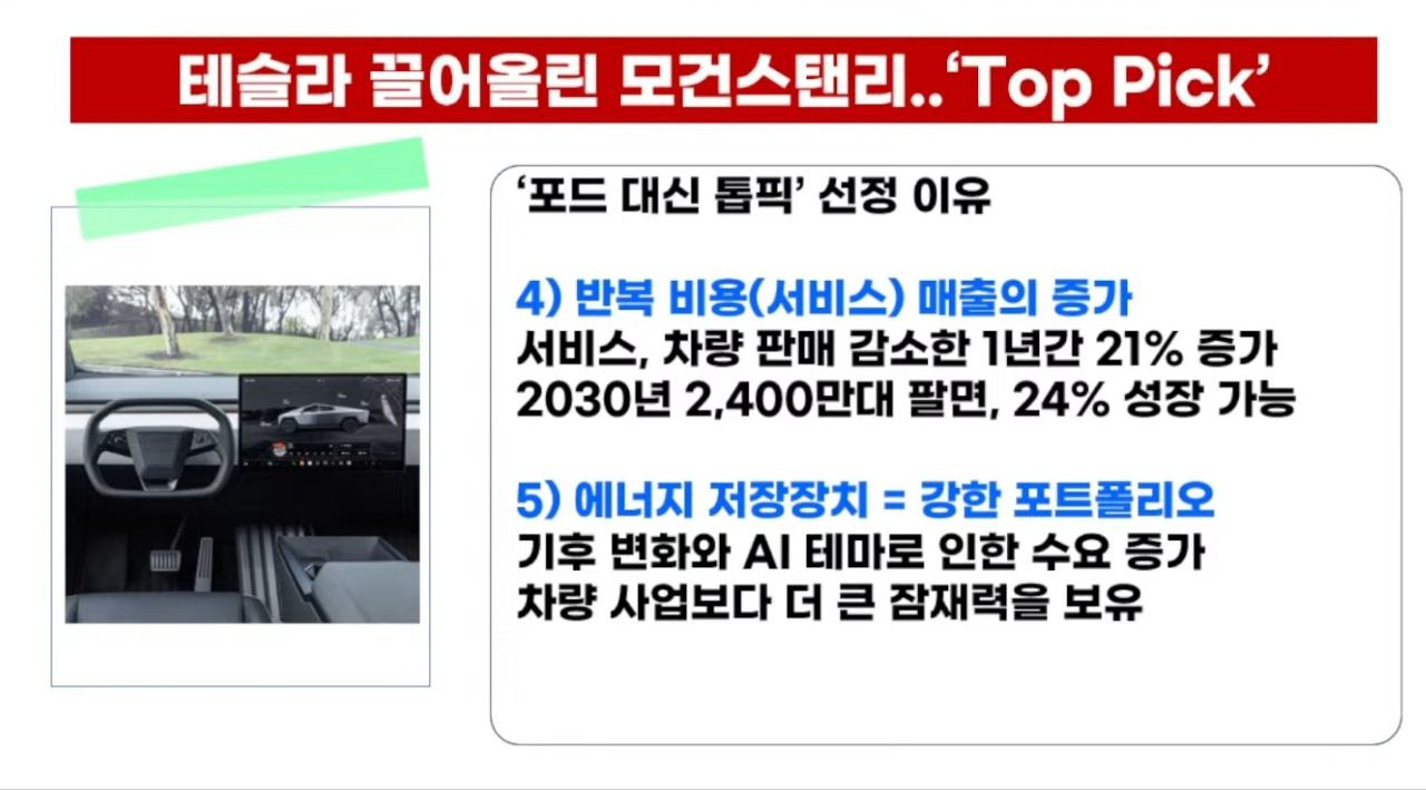 - 모건스탠리에서 자동차주 중 '탑픽'이라고 지정