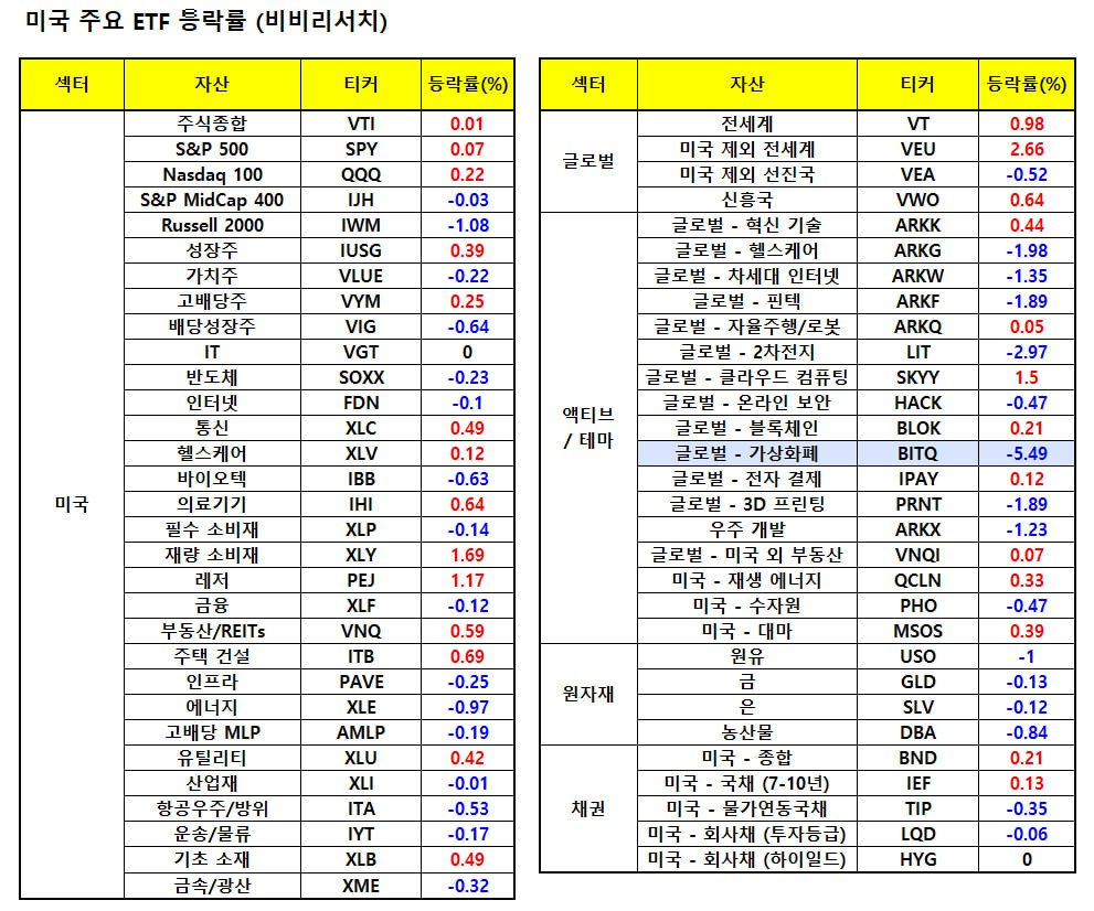 - 메가7 ETF 1% 상승, 러셀2000 -1% 하락