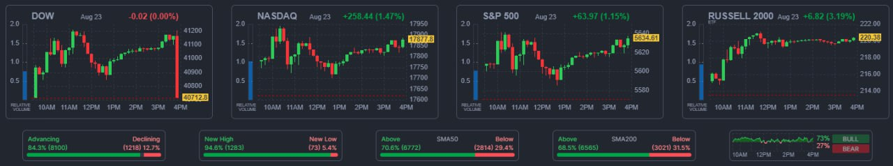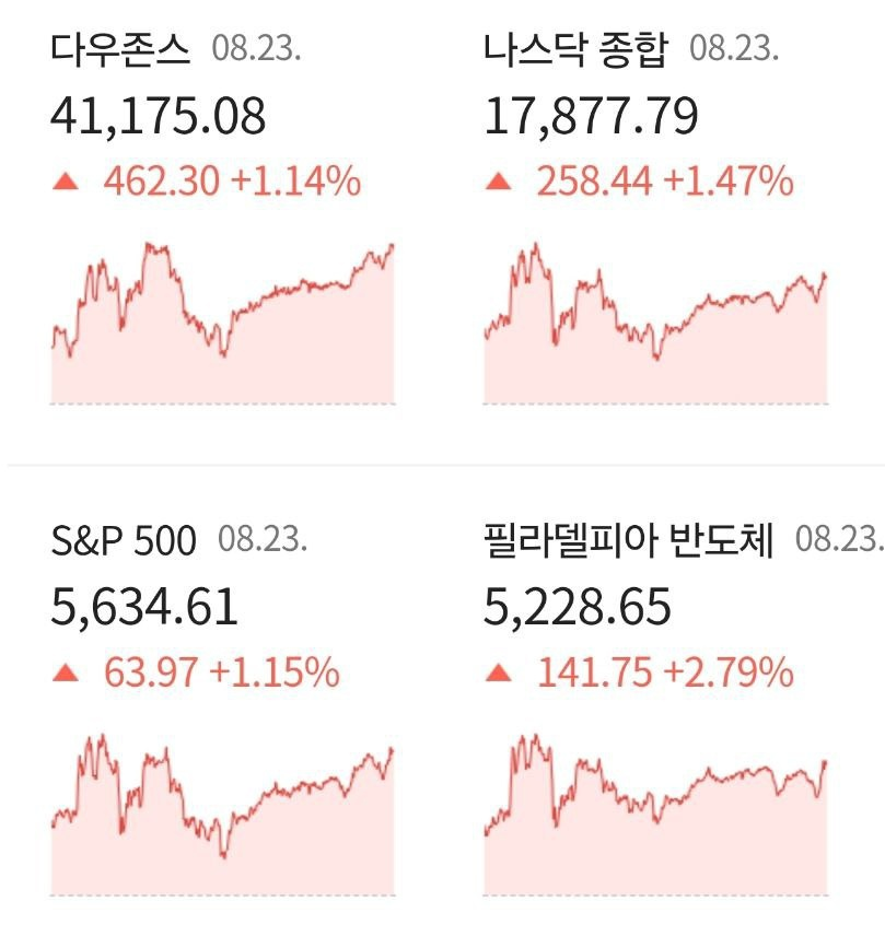 - 08/24 미 증시, 파월의 금리인하 시사에 중소형주 중심으로 상승